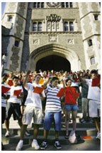 Class of 2007Freshman learning to sing Old Nassau on the steps of Blair Arch. The lesson took place after a special campus tour, sponsored by the Princetoniana Committee, to teach the young ones old tricks. (Frank Wojciechowski)