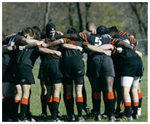 Slices of life when class is out AFTERNOON Photographs by Frank Wojciechowski Just before the mens rugby kickoff against Yale November 15, the Tiger starters have a final moment of reflection in their pregame huddle. Like all rugby games, this one was fierce, but Princeton won 3610. Rugby came to Princeton in 1931, when it was introduced by two British graduate students. Today Princeton has about 35 players, says cocaptain Mark Baur 04. Although the sport appears at first glance to be more about brawn than brains, intricacies in the laws of the game make rugby as much a cerebral game as any, he says. The 100-plus undergraduate and graduate-student members of the Princeton University orchestra rehearse every Monday and Wednesday, for almost two hours. Guest conductor Hobart Earle 83, conductor of the Odessa Philharmonic, prepares the orchestra for the semesters last concerts. Top campus musicians most of whom do not pursue musical careers practice many hours each week. Slices of life when class is out NIGHT Photographs by Ricardo Barros Students burn off stress and calories at the 8,000-square-foot Stephens Fitness Center in Dillon Gym, which opened in 2000. Busiest on weekdays from 4 to 8 p.m., students, faculty members, and others work out here in total more than 1,000 times on an average weekday, less frequently on weekends. The most popular equipment is cardiovascular: elliptical cross-trainers and treadmills used by students who watch TV or read while theyre helping their hearts.