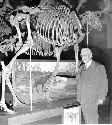 Paleoartist Charles Robert Knight (18741953) stands by one of his