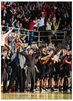 The rivalry wasnt always as intense as it is today. During the Ivy Leagues formative years, Princeton worried more about Columbia and Cornell than Penn. My sophomore and senior years, the best team in the league other than Princeton was really Cornell, says Gary Walters 67, Princetons director of athletics. In March 1965, Princeton and Cornell played a game to decide the Ivy League title. The game was watched by more people than any other at that point in Princeton basketball history 3,000 saw it live; 1,700 watched it on closed-circuit television. The Tigers, who had lost at Cornell earlier in the season, 7069, left no room for doubt in this game. Princeton set the schools single-game scoring record, routing Cornell, 10784 a record broken later that month when Princeton defeated Wichita State, 11882, in the N.C.A.A. tournament. Walterss teammate Bill Bradley 65 had some of his best nights playing Cornell. Twice, Bradley scored 40 or more points against that school. Geoff Petrie 70, Princetons seventh-leading all-time scorer, recalls the rivalry with Columbia. In his sophomore year, Columbia won the Ivy League title, defeating Princeton in a playoff, 9274, at St. Johns. Princeton went 140 to win the league title in 1969, with Columbia finishing second. When Petrie was a senior, Columbia finished second to Penn, the Ivy League winner; Princeton was third. Still, the Princeton-Penn rivalry began to take hold during the Ivy Leagues first decade. Princeton dominated its series with Penn then, winning 15 of 20 games. The Tigers also won five league titles during that span while the Quakers never finished better than second in the standings. Despite the lopsided matchup, the passion already was growing. Former Princeton Coach Willem Butch van Breda Kolff 45, who guided the Tigers from 1962 to 1967, was quoted on a plaque in the Palestra as saying, I just never liked Penn dont know why, just never did. And I dont think they ever liked us much either. Art Hyland, Princetons captain in 1963, shared his coachs feelings toward Penn. He especially didnt care for Quakers captain John Wideman, later to become known as the novelist John Edgar Wideman. Although the two are cordial now, there was no love lost between them after four years of playing against each other. It was at the training table before the final Princeton-Penn game in 1963 that Hylands teammates, along with van Breda Kolff, goaded Hyland into playing a trick on Wideman. This is the kind of stuff that makes you say to yourself, Why did you do those things when you were young and how are people finding them out now? Hyland says. His teammates wanted him to wear a hand buzzer and buzz Wideman when the two shook hands after the pregame meeting between the captains at center court. Hyland agreed, but nearly backed out at the last minute. Everyone is saying, Youve got to do it. Youve got to do it, Hyland recalls. As I was slipping it on behind my back, I felt like I could hear everybody in the stands saying, Hes going to do it. We shook hands, and I buzzed the guy and he kind of looked at me like I was from outer space. As the night went on, we were fortunate to win so it became a fond memory that we all laugh about when we get together. Hylands handshake incident aside, it wasnt until Carril arrived at Princeton in 1967 that the rivalry really began to buzz. If Princeton-Penn could be boiled down to its basic elements, what would remain at the bottom of the pot would be one inanimate object and one very animate being. On the Penn side would be the Palestra, one of the most glorious and historic venues in which to watch a basketball game. On the Princeton side would be Pete Carril. The rivalry was probably most intense when Pete Carril was at Princeton because he made it intense, says Alexander Wolff 79, a senior writer for Sports Illustrated. He didnt have much use for Penn and made it clear he didnt. More than anything, Carril wanted to win. He especially wanted to win Ivy League titles. And because Penn usually was the team preventing that, Carril grew to dislike the Quakers. In Carrils 29 seasons coaching the Tigers, Penn went through six coaches. The Quakers coach who stayed the longest is current coach Fran Dunphy, who faced Carril for seven of his 14 seasons at the school. The first Penn coach to tangle with Carril was Dick Harter. Dick Harter was a very organized, Marine-type coach, who didnt show a lot of emotion, says Penn Director of Intercollegiate Athletics Steve Bilsky, who played for Harter. Pete Carril was just the opposite. When things looked good, Bilsky recalls, Carril would gesture animatedly. When they looked bad, he would slump on the bench. So he became a character, Bilsky says. From the standpoint of how our fans reacted to that, you couldnt have asked for somebody to be a better target. The Sit down, Pete [chant] started here. Hyland was Carrils assistant coach when Harter was at Penn. It was during this time Penn began to emerge as an Ivy League contender. According to Hyland, Carril was particularly frustrated when Penn brought in players who didnt qualify academically at Princeton. He had some real issues at the time [with Penns recruiting], Hyland says. They could recruit some players that we couldnt. There was a guy who went there from New York that we really wanted to come to Princeton. We couldnt get him [into school]. Wolff says it was about that time Carril started calling Princetons admission office heartbreak hotel. Penn was a burr under Carrils saddle in part because of Princetons [academic] circumstances and the admission office, Wolff says. I think that made it a little bit tougher those years that he did lose to Penn. In his book, The Smart Take From the Strong (1997), Carril had this to say: There have been accusations down through the years about recruiting and admission practices at Penn, questions about Penns standards for athletes, whether they were lower than those for the rest of the league. My 