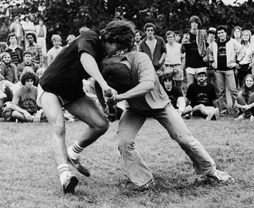 A freshman and a sophomore do battle during Cane Spree, a Princeton tradition