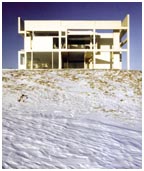 Perhaps because he helps coach that son in both basketball and baseball, Eisenman is a whirlwind of creative energy. Far from winding down, his career is building to a crescendo. After 40 years of working on it, last August Eisenman published a dense, technical study of two buildings in Como, Italy, designed in the 1930s by the architect Giuseppe Terragni, a rationalist architect whose work gave expression to Italy’s fascist regime. (The book, Giuseppe Terragni: Transformations, Decompositions, and Critiques, was published by Monacelli Press.) At the same time, Eisenman has major projects under construction all over the world: a six-building cultural center in Galicia, Spain; stadiums in La Coruña, Spain, Leipzig, Germany, and Glendale, Arizona; plus the Berlin memorial. He was one of a group of New York architects selected to propose design ideas for the World Trade Center site. He lectures constantly, teaches at Yale, and, for the last 10 years, has spent each spring term at Princeton, where his long academic career began in the 1960s. “I was denied tenure at Princeton,” he says wryly. “I was denied tenure at Harvard. I’d love to be denied tenure at Yale because then I’d have a clean sweep.” His disappointments – if that’s what they are – may have been salved when, in March, the University of Rome awarded him an honorary doctorate. Eisenman has made a career out of being a provocateur, a fiercely polemical noodge. “Books are as important, if not more important, than buildings,” he says. “Most buildings don’t afford the opportunity to express ideas. What gets built has very little to do with what I think of as ideas about architecture.” That’s why, this winter, he was more interested in designing a museum in China that probably never will get off the ground than in less challenging projects that will. “My heart and soul are in it,” he says. In his early days as an architect, he didn’t build a thing – he just lobbed incendiary ideas into the world of architecture in hopes, says Richard Lacayo, art and architecture critic for Time magazine, of “profoundly deconstructing the very idea of a building and how a building related to the environment it found itself in.” Of course, in the real world in which we all sleep, eat, and work, such experiments have often been met by skepticism or outright hostility. His first project, begun in the 1960s, was to be a series of 10 numbered houses, though in the end, only four were built. House I still stands on the outskirts of Princeton, though in an altered state. House II was a doozy. Designed for Princeton politics professor Richard Falk as a “Chomskyesque house,” it was to some, the Falks included, a disastrous triumph of theory over utility: In snowy Vermont, it had a flat roof, gaps in the floor large enough for the Falks’ small son to fall through, and no walls, which meant that a whisper could be heard all over the house. Eisenman is reluctant to discuss that house now, but told the New York Times in 2002, when the house was sold, “I don’t design houses with the nuclear family idea because I don’t believe in it as a concept. I was interested in doing architecture, not in solving the Falks’ privacy problems.” Either he’s mellowed or, more likely, in a world gone gaga over Frank Gehry’s Guggenheim Museum in Bilbao, Spain, the world is catching up. Eisenman’s well-known buildings include two national honor award-winners from the American Institute of Architects: the Wexner Center for the Arts and Fine Arts Library at Ohio State University in Columbus, and the headquarters for the Koizumi Sangyo Corporation in Tokyo. “Peter’s buildings, now that they are beginning to appear in greater numbers,” says Lacayo, “will have the effect of making people understand that a building can look different and still operate and be satisfying.” Consider the stadium he’s building in Glendale, Arizona, for the Arizona Cardinals. Now in its sixth incarnation, it is at once breathtakingly gorgeous and thoroughly practical. From the outside it looks like the segments of a giant metallic fruit. A graceful helix bulge spirals gradually upward around the outside, “like an Indian mandala, never complete, or a serpent with its tail in its mouth,” Eisenman says. Neatest of all is the fact that the field of real grass can actually be rolled out of the stadium and into the sunlight, for better growth. Stadiums represent a return to Eisenman’s youth or to a place even deeper in his psyche. Growing up in South Orange, New Jersey, the son of a leather chemist, Eisenman was an absolute sports nut. “I’ve been a sports fan for a hundred years,” he says. “My mother would take me across the street, and I’d run down to the stadium. I’d be first in line – as I still need to be when I get on an airplane – and I would buy a ticket for a quarter. I knew exactly where I’d sit. I didn’t sit where all the other kids sat. I would sit on the visitors’ side and never speak. Just sat quietly and meditated. “And I still do that,” says Eisenman, who has owned season tickets for the New York Giants since 1957 and still attends roughly 15 football games a year. (One year, as an assistant professor at Princeton, he saw all nine Princeton games, home and away.) “We tailgate with 15, 16 people at Rutgers games or Giants games, and I go in by myself an hour early and sit quietly and meditate. [Finding] a place to be anonymous in a crowd, to be able to introvert, is psychologically really important to me. I dream football stadium dreams. They are one of the loci of my dreams.” As a dreaming boy, he created his own newspaper, the Eisenman Eastern News Service. It covered teams he’d made up playing sports he invented. After high school, when he didn’t get into Harvard, and Rutgers, his father’s alma mater, was deemed a bit rough for a dreamy, sensitive boy, Eisenman went to Cornell. There, h