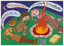 Kids say the darndest things By Andrew Romano ’04 If you’ve read Where the Wild Things Are a few dozen times – and almost any current Princetonian has – it would have seemed on a Friday evening in late April that a starry sky had swallowed up the ceiling of the Cotsen Children’s Library and a black forest had overgrown its walls. A meeting of the Cotsen Critix – a group of imaginative young book reviewers from in and around Princeton – was just getting under way. Shortly after 4 p.m. eight girls and two boys between the ages of seven and 11 squeezed into a tent tricked out with the requisite campsite amenities: cups of hot cocoa, cozy sleeping bags, and, of course, a plentiful supply of Ritz Bitz s’mores. “This is my first time camping out!” said one girl. She poked at a small campfire of cardboard logs and red cellophane flames flickering a few feet from the tent’s entrance flap “Listen up everybody,” said Jessica Lautin ’03, the program’s coordinator. “Today we’re going to learn how to review a collection of short stories.” In the tent the Critix wriggled to get comfortable; master hot-cocoa maker and Cotsen outreach coordinator Bonnie Bernstein lowered the library’s lights and shut the blinds. The room went dark. Seven year-old John David looked around, awestruck. “This really has the camp . . . um . . . camp . . . hmm,” he whispered, scrunching his eyebrows and lips toward the center of his face as he searched for the right word. Suddenly he smiled. “This really has the camp sentiment,” he concluded. Searching for the right word – and investing that search with the spirit of adventure – is what the Cotsen Critix do. “[The Critix] were already avid readers and writers,” says Bernstein. “As a staff of book reviewers, they’ve had a chance to explore the literary world in some very creative ways, and in the process, to develop critical reading and writing skills across several genres.” The Critix first jelled in February 2003, when Bernstein and Eunice Kim ’04, Lautin’s predecessor, invited a handful of Cotsen regulars to meet children’s book author Michelle Green. Within a year, the 17 local elementary- and middle-school students who’d earned the title of Cotsen Critix had adopted pen names (I. Paws, Agnes K. Theodore, S.L.R.J. Menlo) and created a Web site (http://www.princeton. edu/~cotsen/critix/) to house their reviews (“I loved this book! I have a dog and he is one of my best friends.”). They got tips on reading and reviewing poetry from John Timpane, author of Poetry for Dummies (2001). They held a “Beat Poets Café,” where they donned little berets and brooded over original poems. And they held a “literary salon” worthy of late 18th-century Paris, assuming the dress – and, in most cases, the characters – of their favorite writers, and punctiliously debated the finer points of each other’s prose. “The Critix never dropped their author personas,” says Bernstein, proudly. All this thanks not only to Bernstein, Kim, and Lautin, but also to a revolving cast of undergraduate advisers. “Student volunteers are my only staff,” says Bernstein. “They bring creativity, energy, and fresh ideas to programs that they often initiate. [Princeton undergrads] make it possible for me to offer a full calendar of programs every semester.” Back at the campsite, the latest crop of student advisers – Mimi Chubb ’06, Alli Berliner ’06, and Dustin Ferrer ’05, who together had planned the week’s outdoorsy get-together – guided the Critix through a medley of short stories, original and otherwise. Ferrer read Sandra Cisneros’s “My Lucy Friend Who Smells Like Corn.” When she finished, she asked the Critix to respond. “It was weird,” said Sam, who’d been thumbing a GameBoy. “Why do you think the story was weird, Sam?” asked Lautin. “If you were to write a review, you’d have to say why.” “Well,” said Sam. “Usually you wouldn’t describe someone as smelling like corn.” Chubb convinced Lily to share a folksy tale she had written, partly in Gaelic, the week before. “It’s called The Golden Ball,” Lily said, then cleared her throat. “Do you ever wonder how the moon got in the sky? Well here is a story that tells you why.” Lily’s success inspired Irene, who had spent this meeting of the