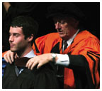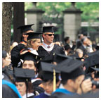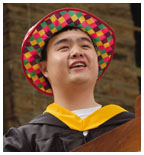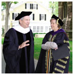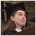 Student speakers Valedictorian Ruth Tennen applauded her classmates and thanked her teachers: “Thank you, teachers for allowing us to challenge – or rather, insisting that we challenge. Teachers who are secure enough in their own intellectual prowess that they are neither impatient with simple questions nor threatened by brilliant ones. Teachers who have given us the confidence to question our intellectual superiors, challenge the status quo, and find solutions that defy traditional thinking.” Wearing a colorful clown hat, salutatorian Brian Tsang, a computer science major, gave the traditional Latin address. He saluted President Tilghman, the trustees, the faculty and staff, and his fellow students. “If they do not already know,” he said, “the greatest thanks goes to our parents, sine quibus non (without whom nothing would be). Hail and farewell.”