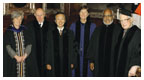 Commencement 2004 Photographs by Ricardo Barros As Steven Kamara ’04 stood in line behind Nassau Hall waiting for Commencement to begin, he pondered what life after Princeton would be like in the post-September 11 world. A politics major who will start a travel company with two classmates, Kamara thought of how Princeton students – absorbed in intellectual pursuits and college friendships — have been removed from the goings-on in the world. This, he said, will “make the transition to the new real world even more salient.” That transition was also on the mind of President Tilghman during Princeton’s Commencement June 1. Speaking above the hum of cicadas, Tilghman reminded graduates of the Commencement of 1970, which – like this year’s – took place during a war that divided Americans and “raised fundamental questions about our policies and values.” Princeton has instilled in students the qualities of an educated citizen, Tilghman said, and she urged graduates to vote and to engage “with the momentous issues of your day,” just as their predecessors in the Class of 1970 had done. She encouraged advanced-degree recipients not only to publish scholarly books, but to “write op-ed pieces and columns in newspapers, give public lectures, advise members of your local, state, and federal legislatures, and speak to both primary school students and senior citizens’ groups. In other words, I urge you to use your fine education at this prestigious university to serve your country, whichever country that may be, and the world; and the common human values that we cherish.” During the ceremony, 1,790 students were awarded degrees: 1,104 received bachelor’s degrees; 404, master’s degrees; and 282, doctorates. About 43 percent of the Class of 2004 graduated with honors. Valedictorian Ruth Tennen, who majored in molecular biology, reflected on her professors’ encouragement to challenge the status quo. She recalled how a professor asked students to critique journal articles written by leaders in the field, and how she was at first reluctant to criticize the work of intellectual superiors. But she thanked her teachers for insisting that students “confront traditional thinking with a critical eye.” Teachers were honored in many ways. Four New Jersey secondary-school teachers received awards for their classroom accomplishments, while four Princeton faculty members — Jeremy Adelman (history), John Fleming *63 (English), Alison Gammie (molecular biology), and James Sturm ’79 (electrical engineering) — received the President’s Awards for Distinguished Teaching. Walking out through FitzRandolph Gate, some graduates had clear paths before them. Anthony Costanzo ’04, a singer and actor who has appeared on Broadway and in Carnegie Hall, will continue to perform professionally, as he did during college. “I can remember at least a few term papers that were completed in the wings during a rehearsal,” says Costanzo, who this summer will sing in Italy and New York. Denis Barkats *04, who earned a Ph.D. in physics, is heading to the California Institute of Technology for a postdoctorate in astrophysics, and will work on an experiment in Antarctica to observe radiation left over from the hot, dense state of the early universe. Like Barkats, many graduates seemed both pleased and relieved to be