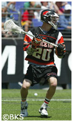 in the spotlight By David Marcus ’92 When coach Bill Tierney called time-out with 21 seconds left in his team’s N.C.A.A. men’s lacrosse semifinal game against Navy May 29, the circumstances looked familiar. In the quarterfinals a week earlier, the Tigers had trailed the University of Maryland 8—6 late in the fourth quarter — before Ryan Boyle ’04 scored two goals to send the game into overtime and assisted on the goal, by Peter Trombino ’07, that gave Princeton a berth in the Final Four. Against Navy, Princeton again gave the ball to Boyle in an effort to tie an 8—7 game and force overtime. This time, though Boyle started with the ball and Trombino took the last shot, the outcome proved less rewarding. Navy goalie Matt Russell made the save, ending a Princeton season in which the Tigers accomplished more than just about anyone had expected when practice began in February, including an 11—4 record and a share of their 10th straight Ivy League title. “We overachieved, we persevered, and we lost to a better lacrosse team today,” Tierney said after the semifinal, played at M&T Bank Stadium in Baltimore before a crowd of 46,923, the largest ever for an N.C.A.A. lacrosse game. “I’ve been less proud of teams that have won the championship.” The Midshipmen won more faceoffs, took more shots, and picked up more ground balls than the Tigers, who combated superior athleticism with characteristic resourcefulness. With Navy clogging up the area around the goal in an effort to shut down Jason Doneger ’05, Princeton’s leading goal scorer, the Tigers resorted to outside shooting. Midfielder Mac Bryson ’05 scored three goals, half his output for the team’s first 14 games, and Drew Casino ’04 added two goals to finish with 23 for the year. Princeton had trouble clearing the ball out of its defensive end all day, but defenseman Tim Sullivan ’05 took advantage of a Navy lapse to clear the ball and feed Boyle for a goal that tied the game at 5—5 early in the third quarter. Boyle also had three assists, capping a season in which his 23 goals and 44 assists earned him first-team All-America and Ivy League Player of the Year honors, both for the second time. Despite the loss, the Tigers took pride in their effort. A year after the senior-laden 2003 squad was blitzed by Syracuse 15—5 in the N.C.A.A. quarterfinals, lacrosse pundits’ preseason predictions of Princeton’s demise proved premature, thanks to a group of freshmen whose energy matched their talent. “The real turning point came in September, when these young men came on campus,” Tierney said. “The seniors got on board with the enthusiasm of the younger guys.” The most significant newcomer was Trombino, who scored 24 goals and 11 assists at attack and was chosen as the Ivy League’s Rookie of the Year. Whitney Hayes ’07 and Scott Sowanick ’07 also emerged as offensive threats, running first midfield with Casino and finishing fifth and sixth on the team in scoring, respectively. On the defensive end of the field, Princeton improved dramatically during the year. Going into the season, Tierney believed that he had to adjust his defense in response to other teams’ increasing success against it in recent years. His instinct proved correct; the Tigers allowed an average of 9.8 goals in their first six games, but only seven goals a game in the season’s last nine games. That improvement, combined with Princeton’s youth, should prove
