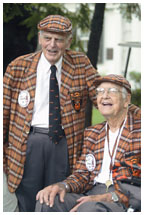 Reunions 2006 Photographs by Beverly Schaefer and Frank Wojciechowski A week before Reunions began, Carrie Ward Grabowski '81, who co-chaired the 25th reunion with Jeffrey Mitchell '81, summarized her class's history. "We've always been a very enthusiastic class," she said, "and with us, it always rains." Grabowski was right on both counts: A record 547 members of the Class of 1981 registered in advance for Reunions, and gray skies accompanied their return, drenching the campus for much of the weekend. But unlike the rain that moved the class's Commencement to Jadwin Gym 25 years earlier, the Reunions weather cooperated long enough to give the '81 alumni their moment in the spotlight, leading the P-rade to its muddy terminus at Poe and Pardee fields. Reunions 2006 brought about 17,000 alumni, family members, and guests to Princeton June 1–4, and the reuners took part in a variety of educational, artistic, and social events. Alumni-faculty forums, tours of the University Art Museum, community service projects, athletic team reunions, class dinners, and performances by bands at class headquarters filled the weekend schedule. More than 2,800 people attended the 17 alumni-faculty forums, with discussions of Iraq and the Supreme Court under Chief Justice John Roberts drawing the largest audiences. Other topics on the menu included food and society, with Fast Food Nation author Eric Schlosser '81 participating; retirement, with a focus on baby boomers; and "Investing Today," a panel including Vanguard founder John Bogle '51. In addition to the first rounds of forums, Friday's activities included an organ concert at the University Chapel, where more than 150 people gathered to hear the sounds of Aaron Copland, Duke Ellington, and others radiate through the gothic hall. The Association of Princeton Graduate Alumni honored standout preceptors at a reception Friday evening, shortly before the group acknowledged retiring professors John Fleming *63, John Gager, and Theodore Rabb *61 with a standing ovation at an emotional "Tribute to Teaching" dinner. Later that night at the Class of 1971 headquarters, 1960s pop singer Darlene Love, sporting a dress custom-cut from the class's Reunions jacket cloth, entertained the audience with some of her memorable hits, including "He's a Rebel" and "Christmas (Baby, Please Come Home)." Saturday morning brought steady rain, but the Princeton marching band played on at the Fred Fox '39 Memorial Concert on Cannon Green. A little more than an hour before the P-rade's scheduled start, the Class of 1961 gathered on the steps in front of Blair Arch for a class photo. When the call came to put the umbrellas down and smile for the camera, a 10-minute downpour descended, delaying the shoot, but reunion chairman Joe Prather '61 managed to laugh it off when he returned to the class's headquarters. Ed Stanczak '71, the Class of 1971 reunion chair, said it was "amazing how everybody copes." Of course, some coped better than others: Stanczak's class had the good fortune to include umbrellas as part of this year's costume. The rain stopped in time for the P-rade, and centenarian Malcolm Warnock '25, recipient of the 1923 Cane for the oldest returning alumnus, settled into his golf cart near FitzRandolph Gate at the head of the Old Guard. The colorful procession featured Frisbee-flinging families from the Class of 1981 and a strong contingent from the Class of 1936, including John Paul Jones '36, a member of Princeton's undefeated 1935 football squad, who rode with a football in hand and a poster declaring his old nickname, "End Around" Jones. Tom Hargrave '46 set up a keyboard on a flatbed trailer and "played it again" for his classmates, who adopted a Casablanca theme. Near the reviewing stand, members of the facilities staff fought a losing