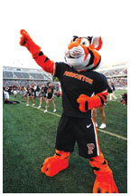was all smiles. The Tiger mascot debuted its new perky, plush-pawed costume