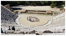 the Greeks By Deborah Yaffe After six weeks' intensive study of ancient Greek drama, a group of Princeton students stood in the 2,400-year-old amphitheater of the Greek city of Epidaurus, a space renowned for its acoustics. One by one, they mounted the stage to sing, declaim, or chant in tones destined to reach the 55th row. "Each of us got up on the platform, and the first thing we could say was, 'Wow!'" says Lucas Barron '09. That study trip to Greece during the University's March spring break came at the midpoint of a new course, "Re: Staging the Greeks," which married literary analysis to dramatic performance and will culminate in the fall with a production in McCarter Theatre Center's Berlind Theatre. The course treated Greek plays as works "meant to be seen and heard, not meant to be studied and read," says Tim Vasen, a lecturer in the theater and dance program, who taught the class with program director Michael Cadden. "We can re-create this as living theater that was created for that society to talk to itself, about itself," adds Vasen. The 16 students, all experienced actors, auditioned for the class and by midsemester had read the complete 44-play ancient Greek canon. Each week, the class devoted one meeting to academic discussion and one long afternoon to presenting previously rehearsed scenes, in styles ranging from the straightforward to the radical. One group of students experimented with shadow theater, performing part of a scene behind a white sheet; another updated Aristophanes' bawdy, topical comedy Lysistrata with references to their own sex lives. Their immersion in Greek drama, students said, enriched the study trip, which was financed by the Program in Hellenic Studies. The group toured museums and ancient sites, worked with Greek actors and directors, ate grilled octopus, watched the sun rise over the Acropolis, swam in the Aegean Sea ("It was freezing — oh, my God!" says Rebecca Foresman '10. "That's something they definitely don't tell you in the legends!"), and saw a Greek-language production of Shakespeare's The Tempest. They also conducted academic business, gathering on the roof terrace of their hotel with the illuminated Parthenon looming in the background to debate — in the spirit of Athenian democracy — which play to perform in the fall. With the class split after days of discussion, Sam Zetumer '09 suggested breaking the deadlock in an appropriately Greek way, by introducing an element of chance — what Zetumer says the ancients saw "as a way of including the gods in your choice." So they placed the ballots in a pillowcase and picked the winner: a combination of two tragedies, Aeschylus' Agamemnon and Euripides' Iphigenia at Aulis. For Agamemnon, one of the oldest plays in the Greek canon, the students will use a translation by Princeton comparative literature professor Robert Fagles, who died just days after the group returned from Greece. For Iphigenia at Aulis, one of the last plays in the canon, they will use a new translation by Barron, a comparative literature major. The pairing of legendary scholar and emerging talent represents, Vasen
