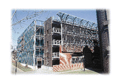 Far more down to earth, and of far greater significance to the university, is Rafael Viñoly's new horseshoe-shaped Princeton Stadium. The stadium works wonderfully well from a practical standpoint. Circulation is deftly handled; the stadium must be one of the easiest places in the world to spot people you know; facilities are conveniently located; and the sunken field provides an enhanced sense of intimacy. It is a pleasure to watch a football game there, but less so to visit the stadium when it's empty. The old problem of geometric reductionism asserts itself once again. Viñoly's arcade, though supposedly hearkening back to Palmer Stadium, is conceived merely in terms of rectangular voids in a grid of tannish concrete block with exposed gravel aggregate. When the Princeton shields on the metal-mesh gates are themselves contorted into squares, you start to wonder whether things are getting out of hand. Surely Coleridge would have thought so.