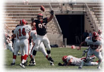 Best play: Blevins finds Phil Wendler '00 along the sideline for a 36 yard gain in the third quarter.