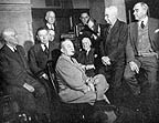 Shown listening to the ceremony on the radio at the Princeton Club of New
