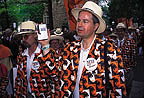 tails sprouted behind band members of the Allentown High School Redbirds,