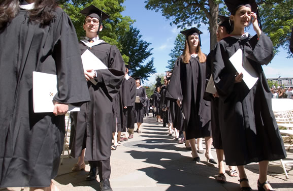 Students file in during the Processional on a picture-perfect morning at Princeton .