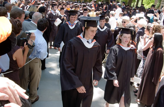 With the ceremony over, the University's newly minted alumni pass by family members waiting with cameras.