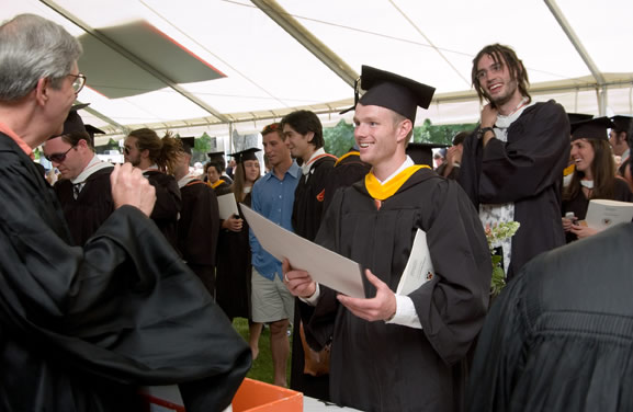 Collecting his diploma and words of congratulations is Mark Collinson '05.