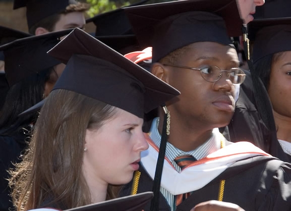 Seniors Emma Somers and Nyron Burke during the Commencement ceremony.