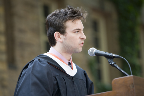 Chris Douthitt, a music major from Spokane, Wash, gives the valedictory oration.