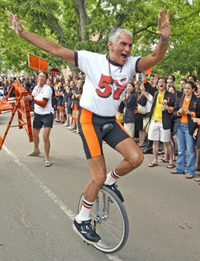 | REUNIONS SLIDE SHOW Jay Lehr '57, unicycling in the P-rade for the sixth straight year, draws cheers from the graduating Class of 2005. Reunions drew close to 20,000 persons back to Princeton for the Memorial Day weekend. To view PAW's slide show of 28 photos from Reunions 2005, click on the photo above, then click on the instructions above each new photo. |