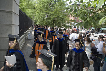 After exiting through FitzRandolph Gate, graduates walk down Nassau Street on their way to pick up their diplomas behind Nassau Hall.