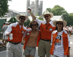 | From left, Michael DiMarino '92, Michele DiMarino s'92, Steve Stawski '92, and Michelle Stawski s'92 sport the class's Western-themed costumes. |