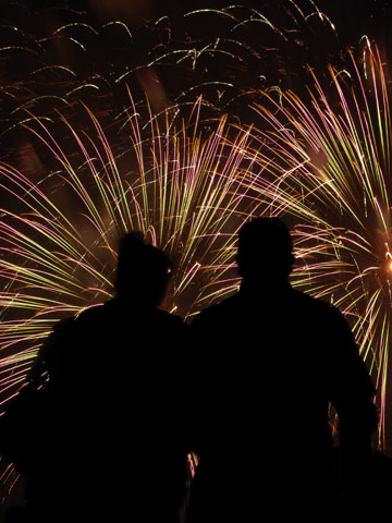 Saturday night's fireworks light up the sky over campus.