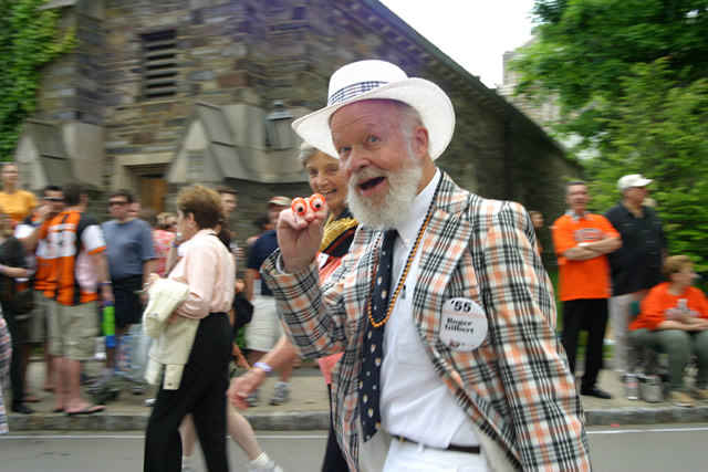 Roger Gilbert '55 has a special greeting for onlookers during the P-rade.