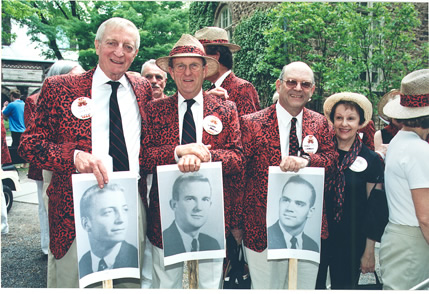 From left, Parker Harrell, Jeff Brown, Harry Lippmann, all Class of 1960, with their Nassau Herald photos. At right is Phyllis Lippmann.