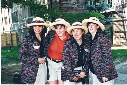 Sporting their new Class of 1980 25th reunion jackets are, from left, Norma Santamaria, Eve LaPlante, Sylvia Hurtado, and Elaine Soffer.