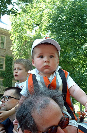 Peter Teti (8 months) perches atop his grandfather Jim Beha