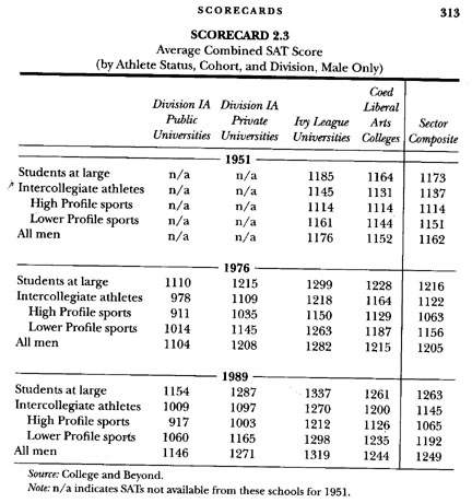 the slide in the SAT scores of admitted athletes at Ivy League schools
