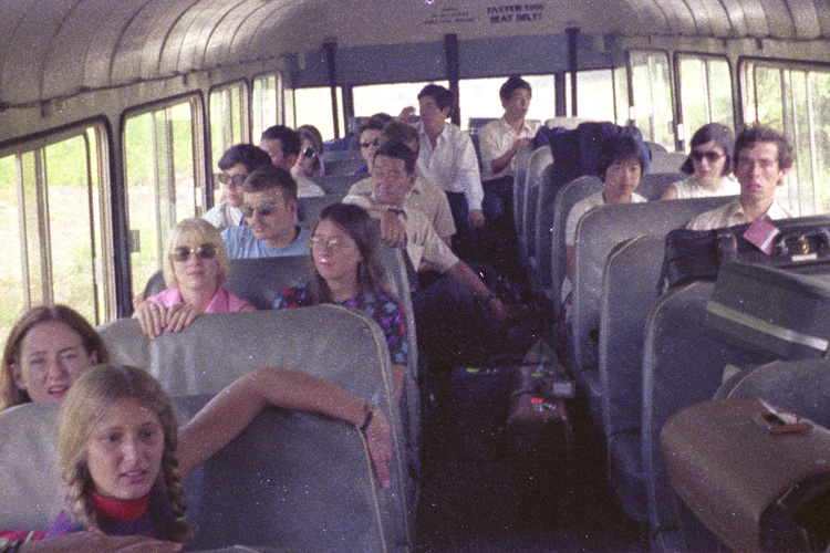 a bus to the Volcano House hotel in Hawaii Volcanoes National Park.