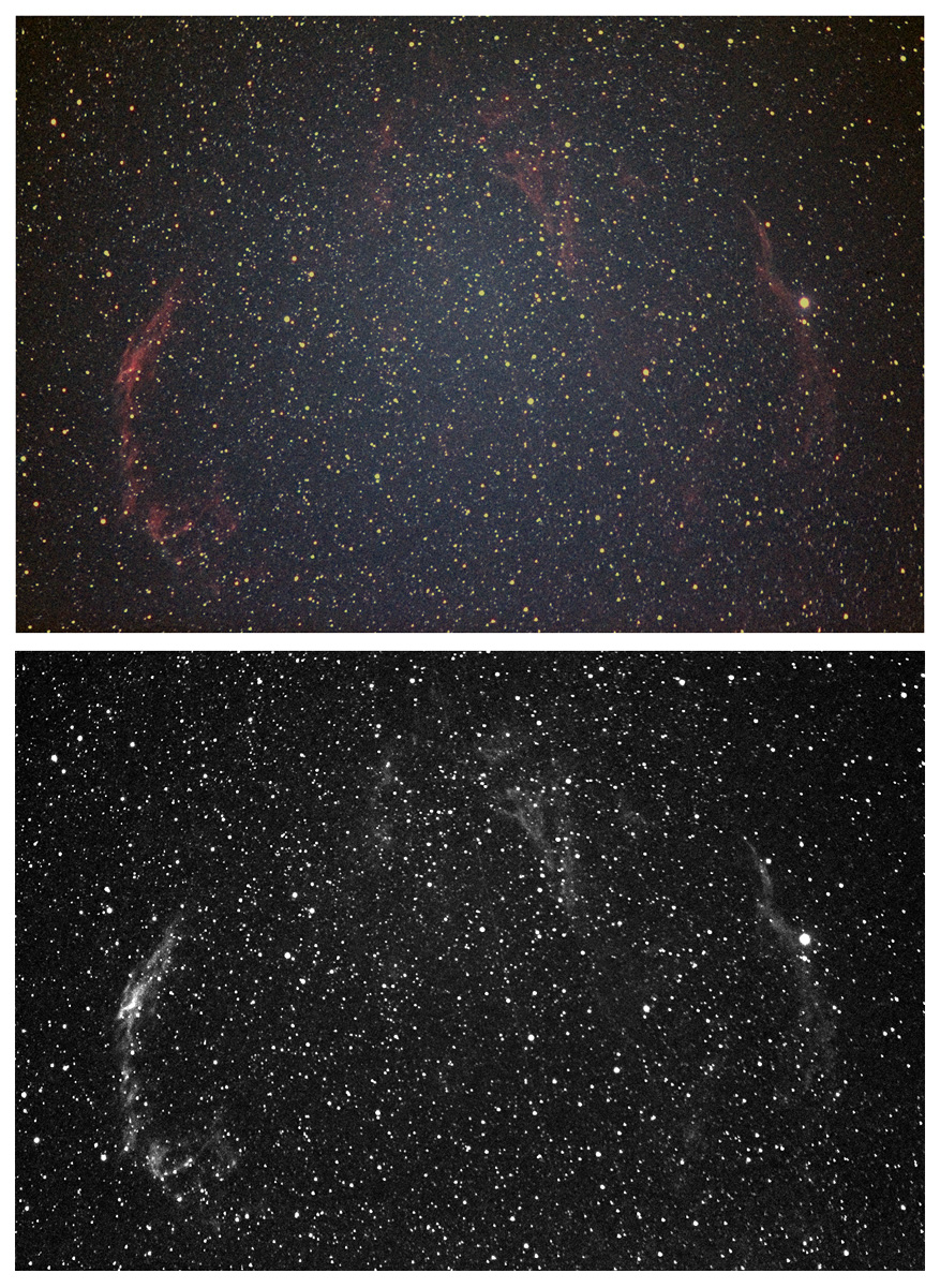 Both the color and black-and-white images are from the same negatives, but the B&W one uses only the red information and was processed differently in Adobe Photoshop. For the color image, the most disagreeable aspect is the brightening in the center, which is due to the inevitable partial vignetting of the photograph. In a normal picture this would be invisible, but in a contrast-enhanced photograph it becomes obvious. The vignetting is less apparent in the B&W image because it was removed by application of a radial gradient mask; however, this method (in my hands) always leads to ugly color artifacts when I use it for color photos.