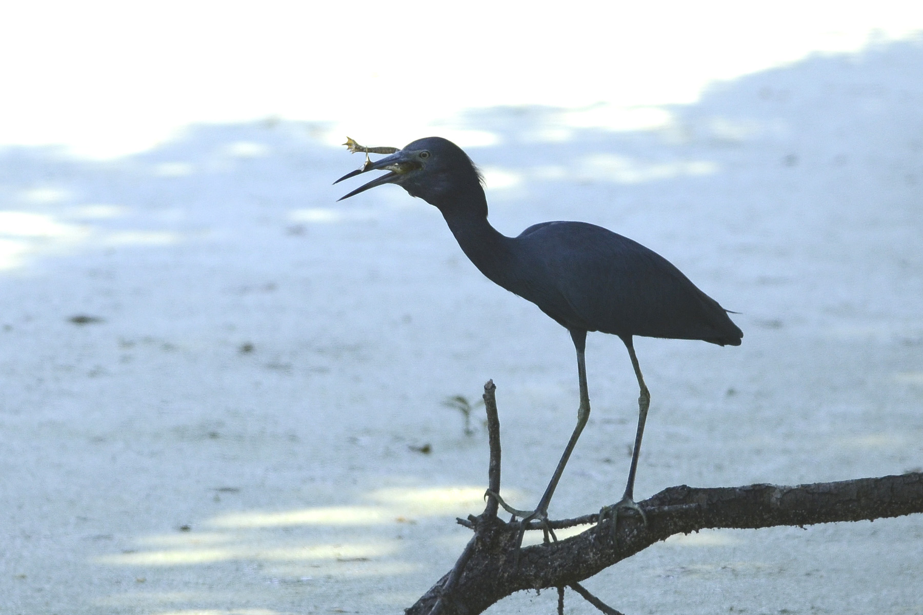 Little blue heron with frog (New Orleans City Park)