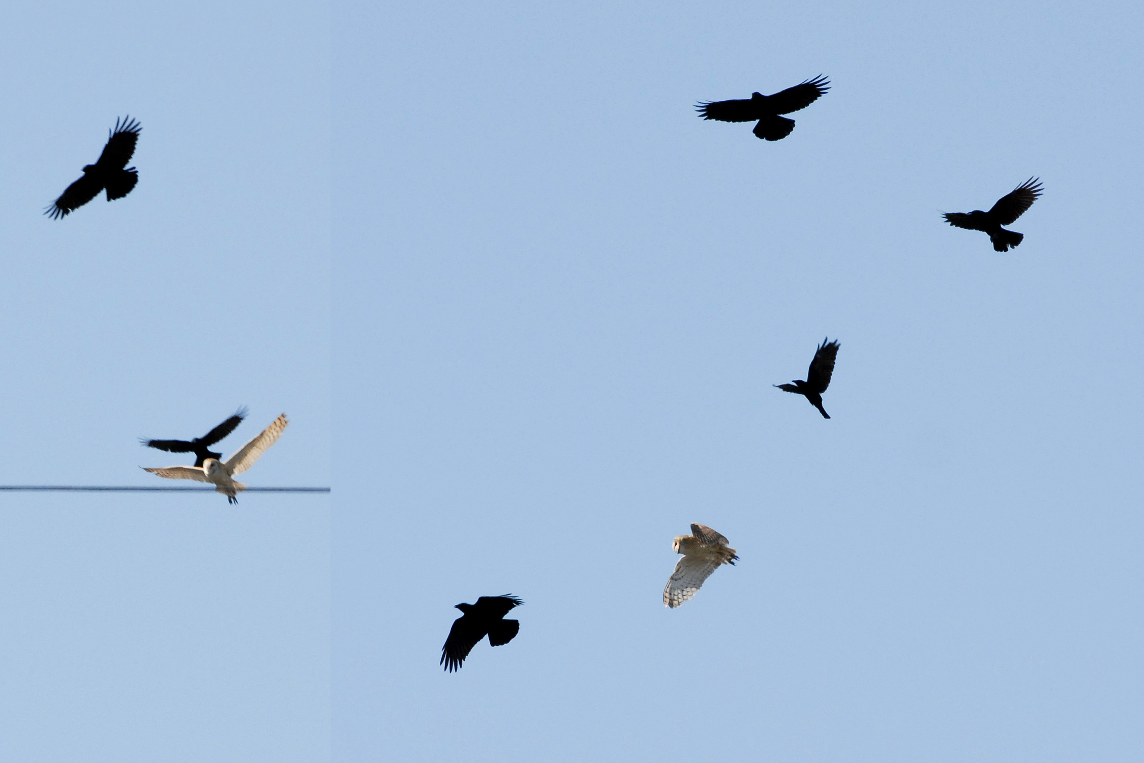 Barn owl harassed by crows (Audubon Park)