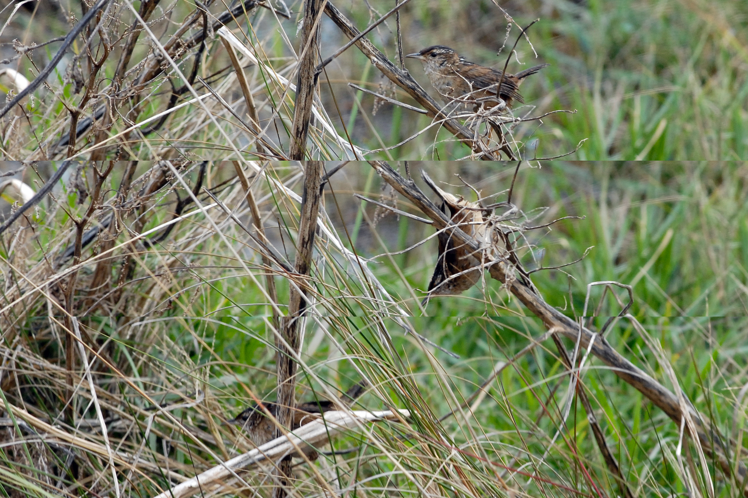 Marsh wren dives for cover! (Bayou Sauvage NWR)