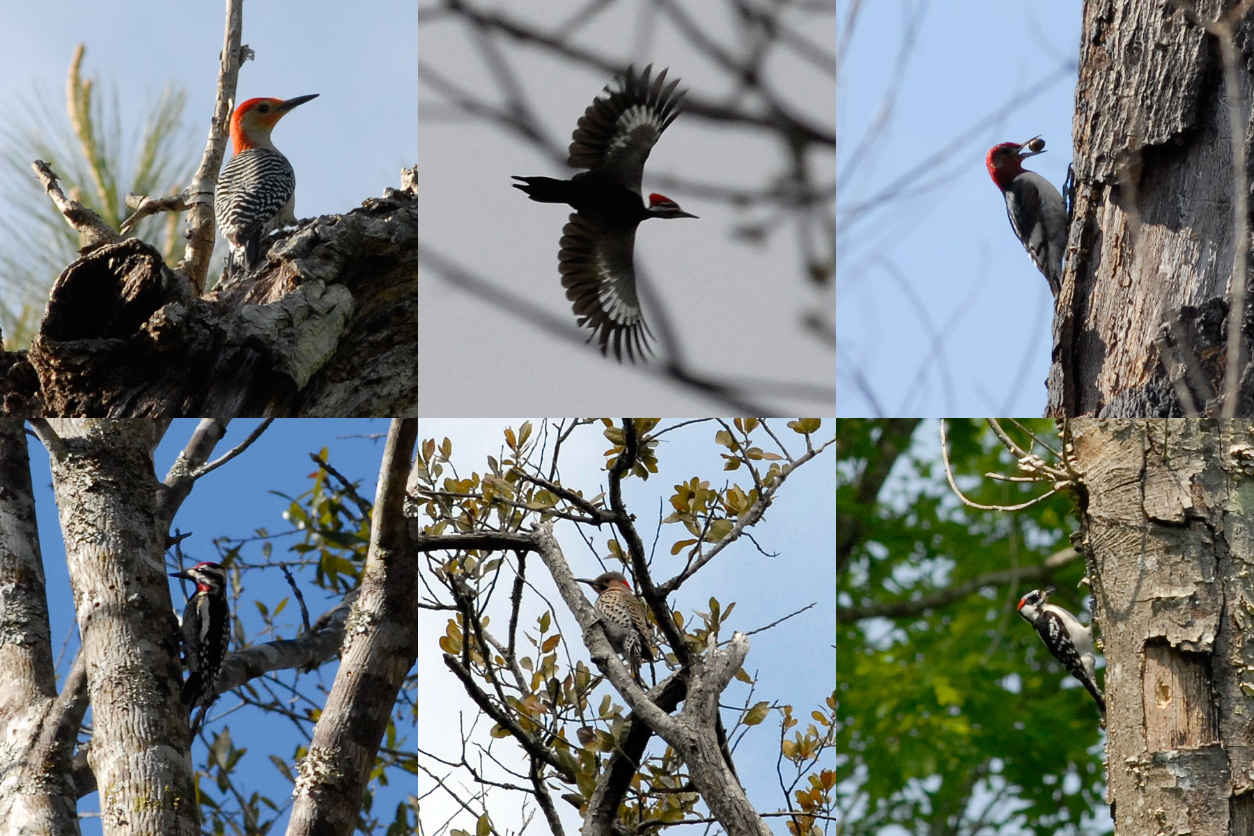 Six woodpeckers
