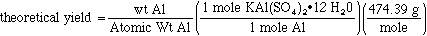 we see that the stoichiometric relationship for Al: KAl(SO4)212 H2O is 1:1. To calculate the theorectical yield for KAl(SO4)212 H2O then