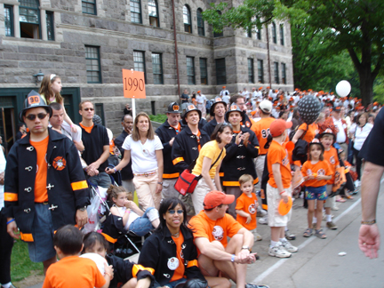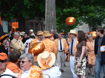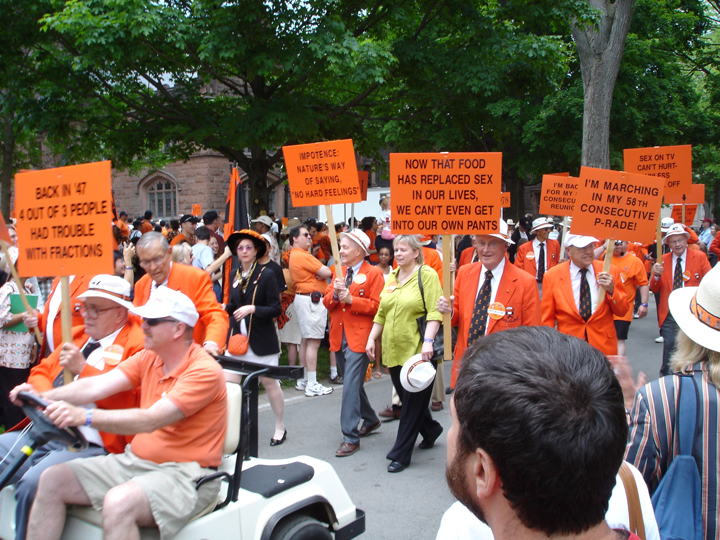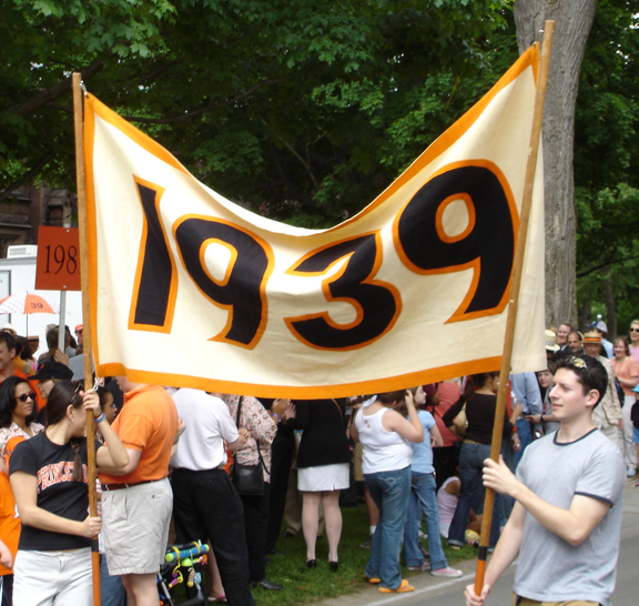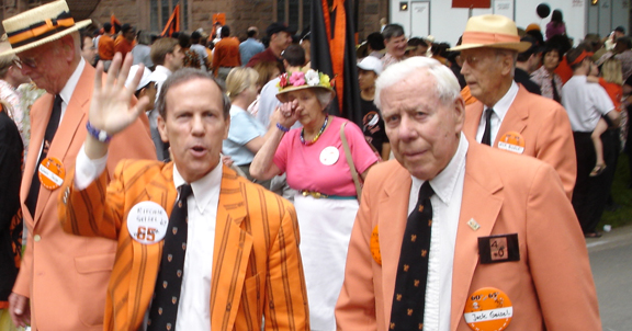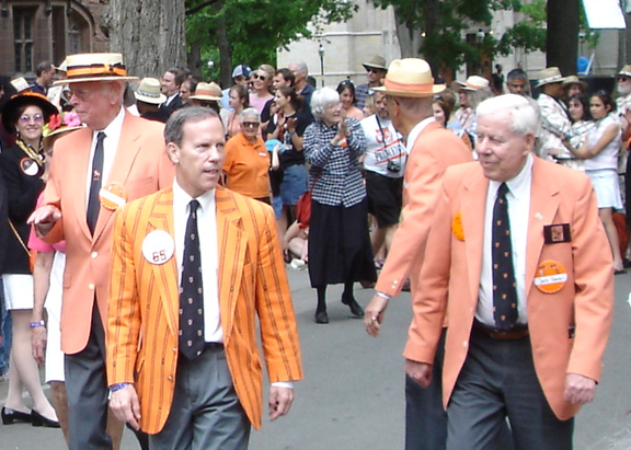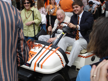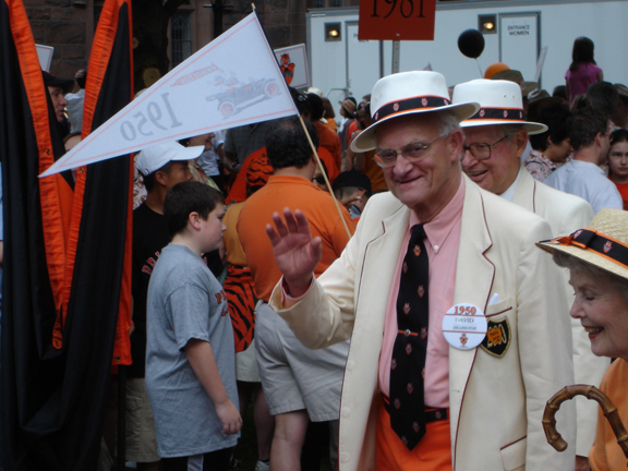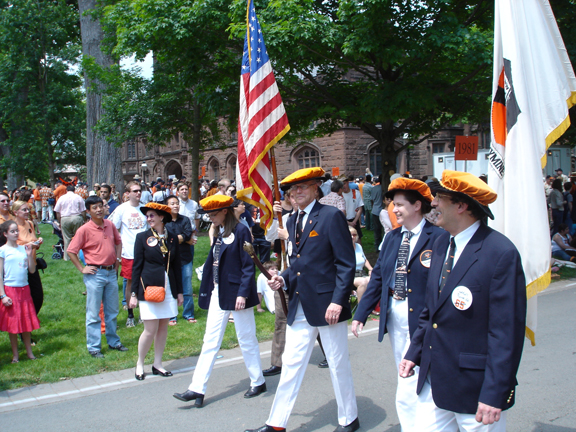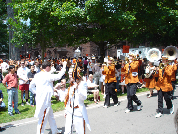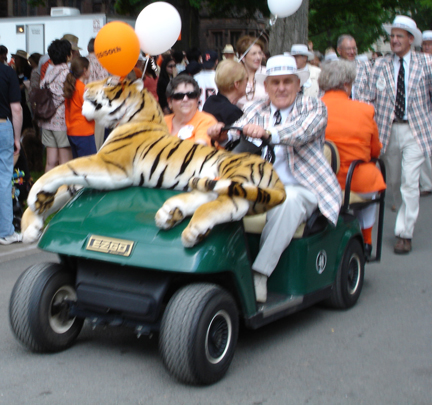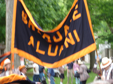 We pass before the reviewing stand and give a rousing locomotive for President Tilghman.