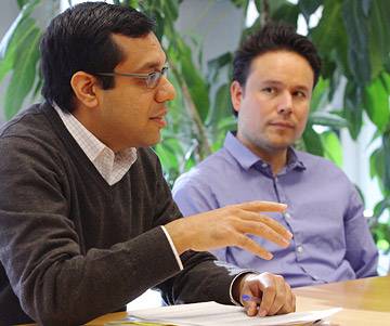The GLF program fellows bring a range of experience to the program. Arunabha Ghosh (left), a native of India, has worked as a policy specialist at the United Nations Development Program in New York and at the World Trade Organization in Geneva. George Gray Molina worked as the chief economist for the president of Bolivia, his home country, during two administrations.