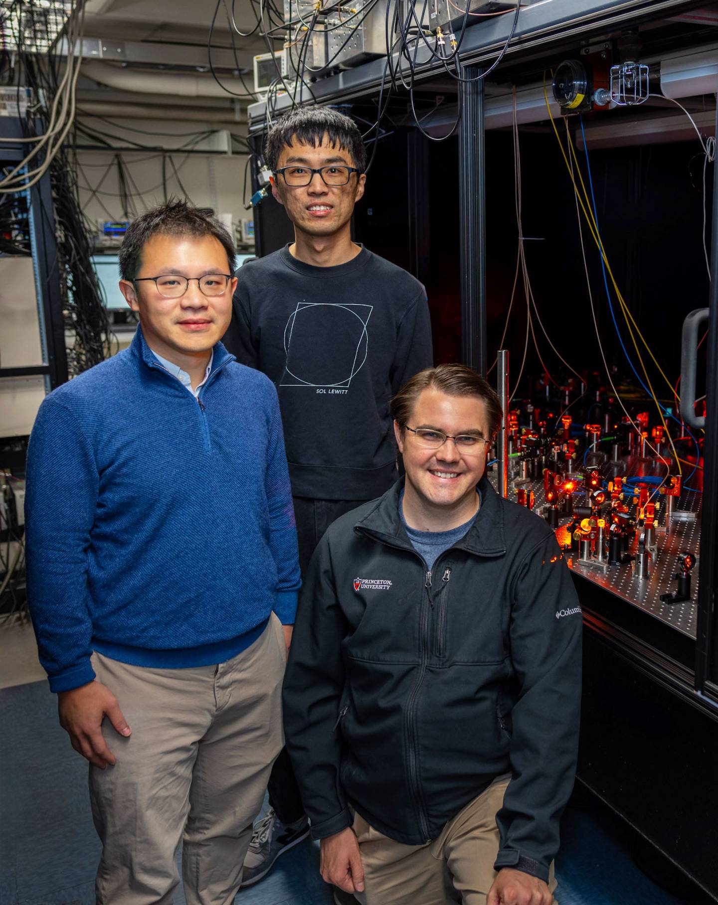 Members of the Princeton research team. From left to right, Assistant Professor of Physics Lawrence Cheuk, graduate student in electrical engineering Yukai Lu, and graduate student in physics Connor Holland.