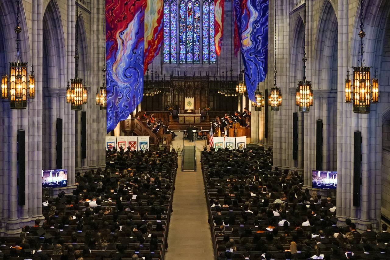 Graduating seniors gathered inside the University Chapel for the service as friends and families watched from screens outside on Cannon Green and at several other simulcast locations around the campus.