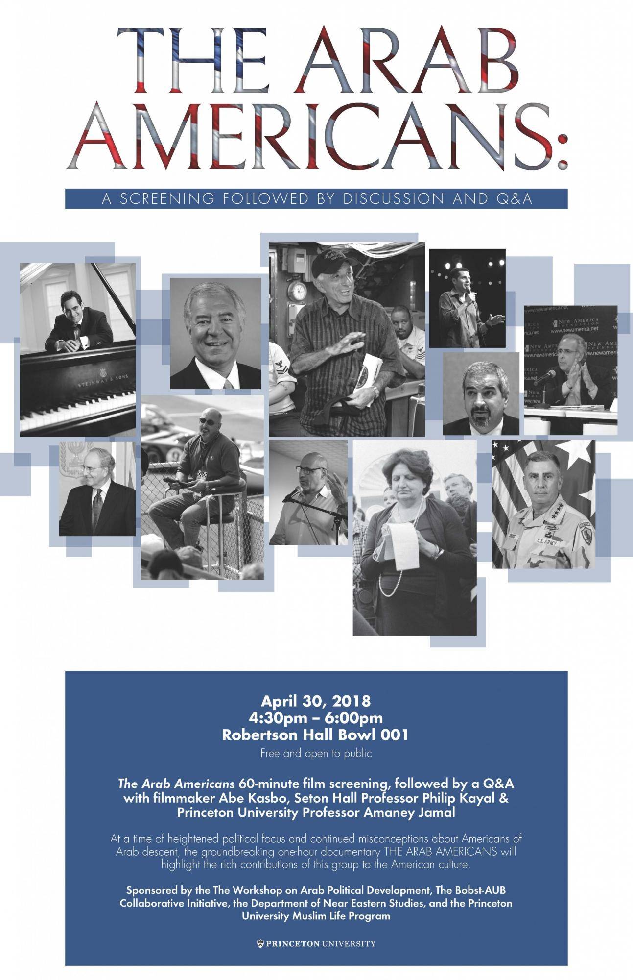 A documentary film screening of The Arab Americans will be followed by discussion and Q&A with filmmaker Abe Kasbo, Seton Hall Professor Philip Kayal, and Princeton University Professor of Politics Amaney Jamal.