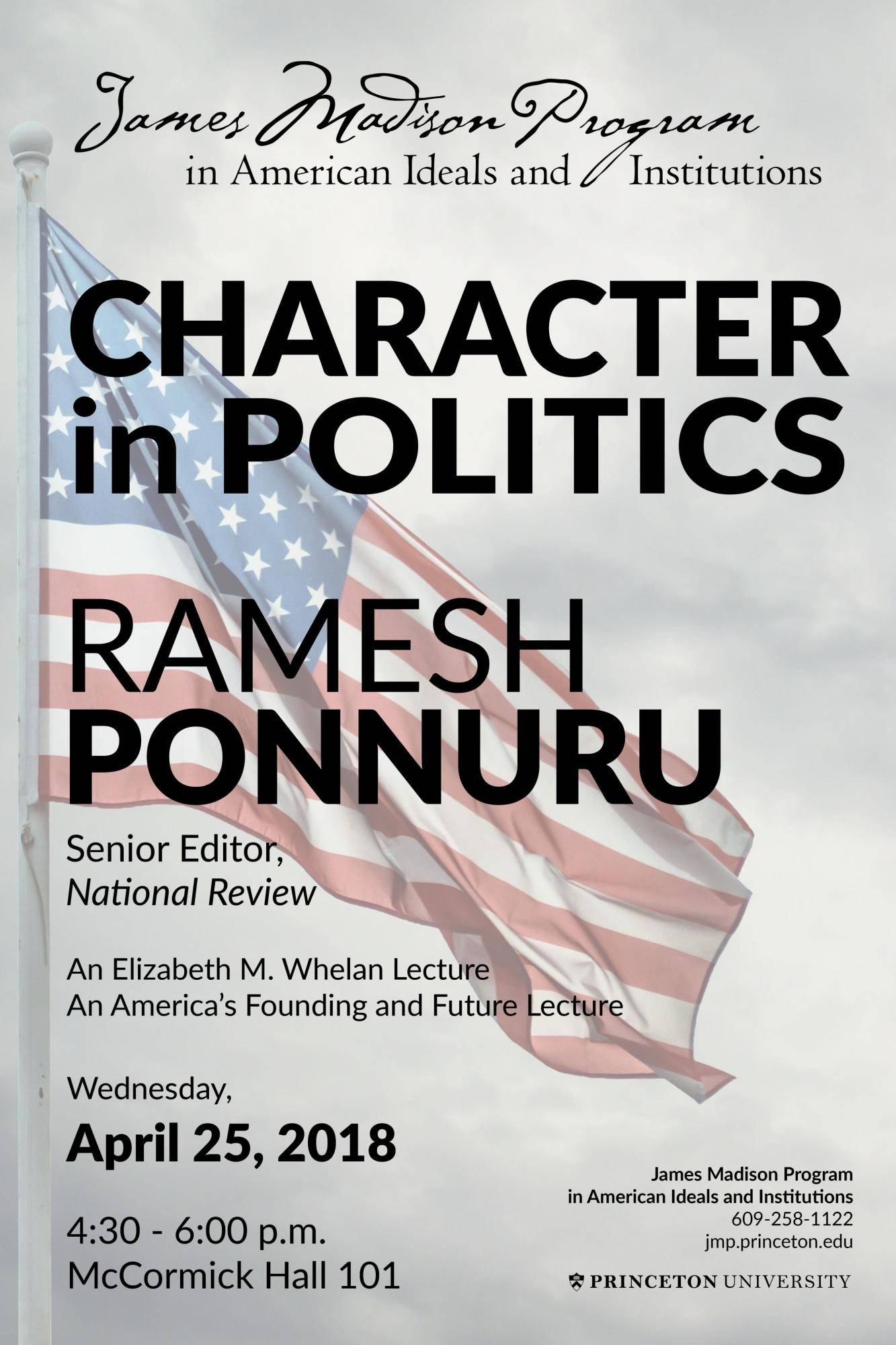 This presidency has renewed the perennial debate over the importance of public officials' character. Can a distinction be made between public and private virtues? How should an official's policy successes be weighed against his character defects? And what should citizens make of the shifting positions of liberals and conservatives on these issues? Ramesh Ponnuru will discuss these and other vexed questions of the present moment.