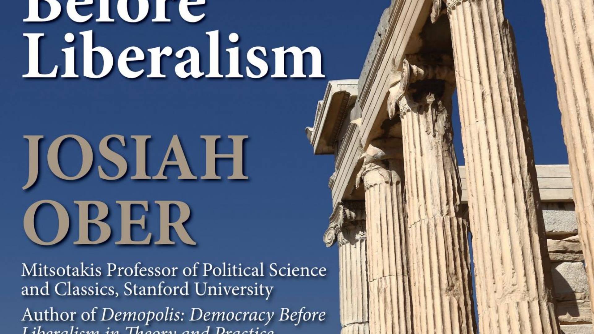 What did democracy mean before liberalism? And what are the consequences for our lives today? Combining history with political theory, this lecture restores the core meaning of democracy as collective and limited self-government by citizens. That, rather than majority tyranny, is what democracy meant in ancient Athens and in “Demopolis,” a hypothetical modern state that lacks Athens’ historical baggage. Demopolis’ residents aim to establish a secure, prosperous, and non-tyrannical community, where citizens govern as a collective, both directly and through representatives. They willingly assume the costs of self-government because they recognize that doing so benefits them, both as a group and individually. Basic democracy, as exemplified in real Athens and imagined Demopolis, can provide a stable foundation for a liberal state. It also offers a possible way forward for religious communities seeking a realistic alternative to autocracy.
