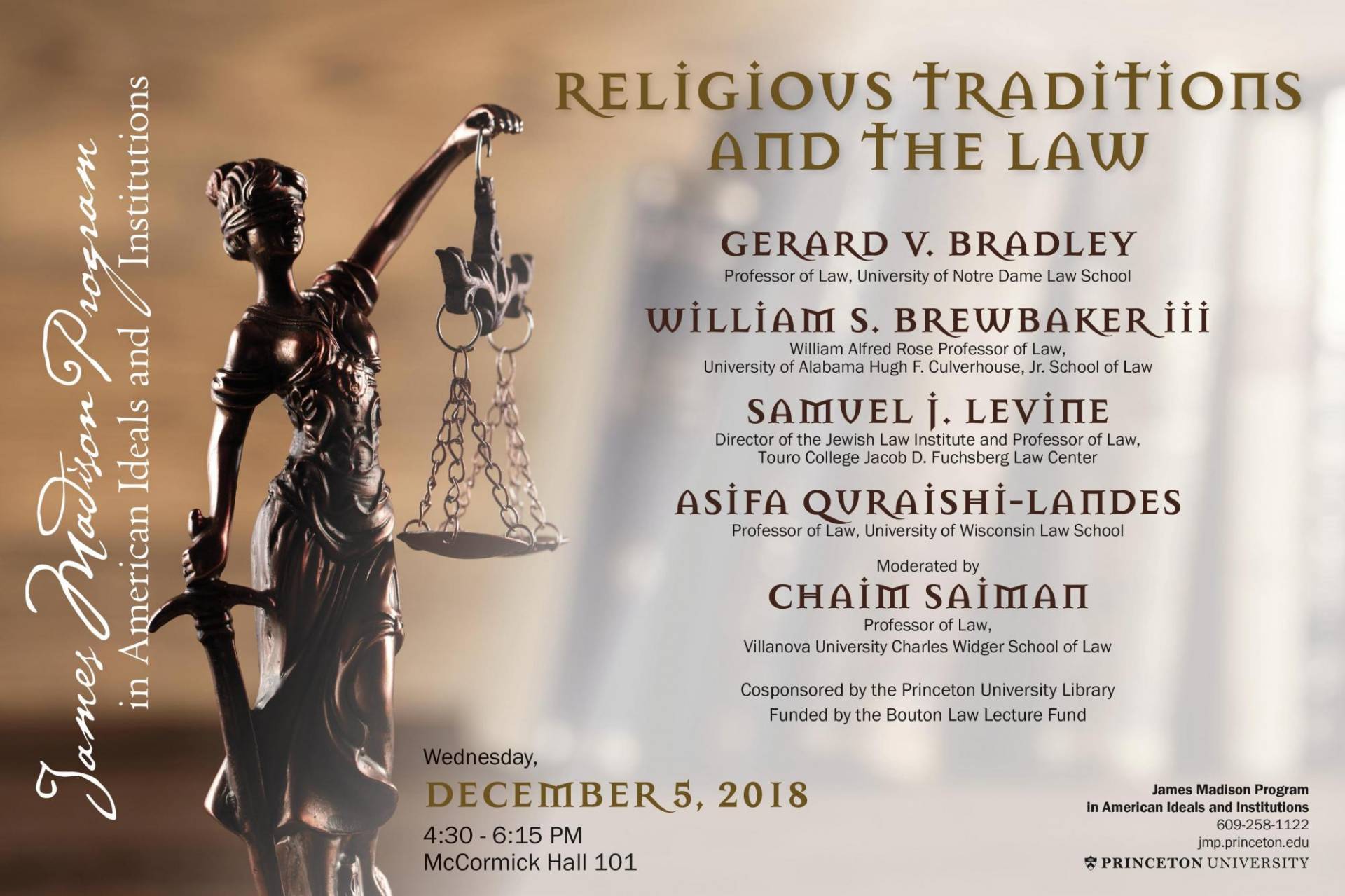 Each of the Abrahamic religious traditions relates to the idea of law in a variety of different ways: as covenant between God and man, as an ordering principle of natural and human behavior, or as a human understanding of the command of God. Focusing on a few basic principles of American constitutionalism such as rule of law, separation of powers, and the role of institutions in legal interpretation, the panel will explore what these religious traditions have to contribute to our understanding of those principles, including alternatives to them. Can religious legal traditions offer any insights, contrasts or parallels to the American legal approach? Has the American legal approach been informed by the religious legal approach as American law developed in the past? Might the religious legal traditions inform, or improve upon the continuing development of American law in the future?