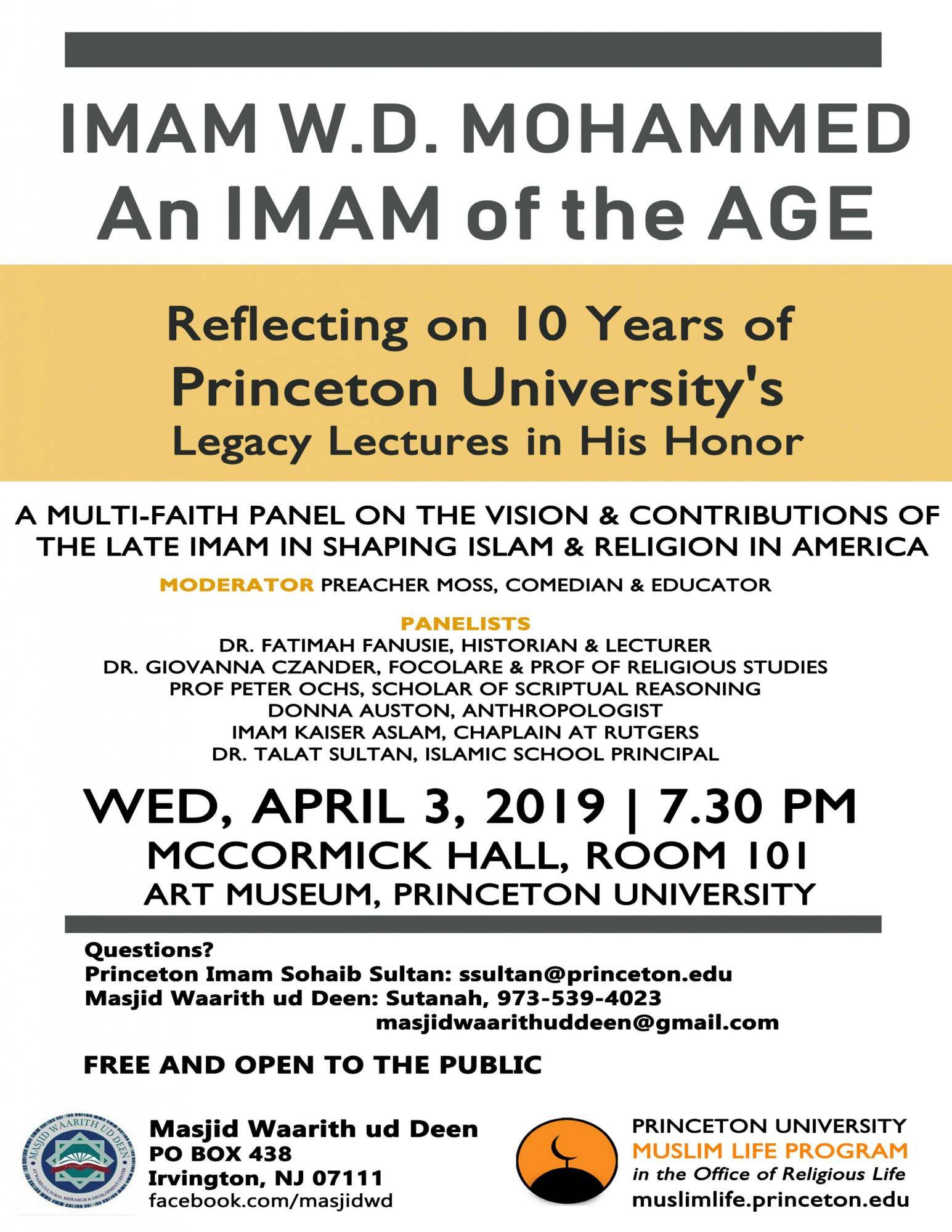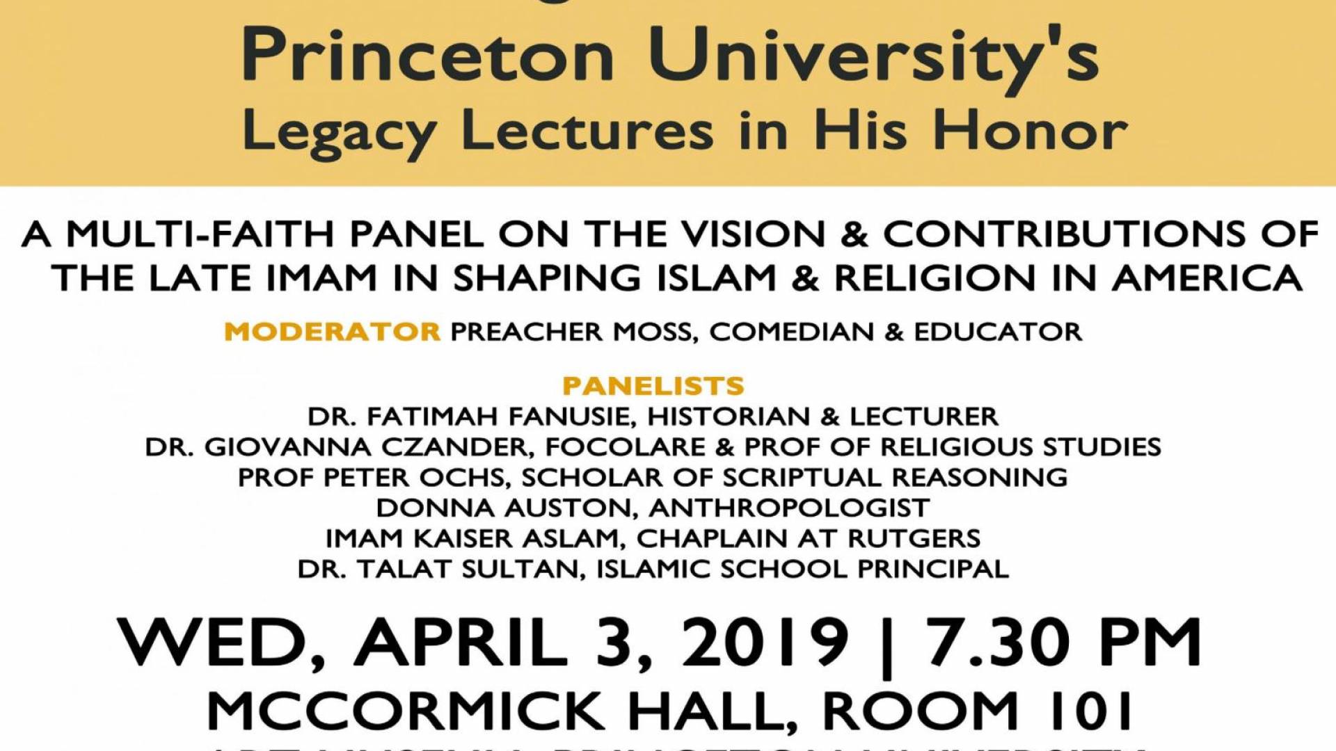 Reflecting on 10 Years of Princeton University's Legacy Lectures in His Honor. A multi-faith panel on the vision and contributions of the late Imam in shaping Islam and religion in America moderated by comedian and educator, Preacher Moss. All are welcome! Please contact Imam Sohaib Sultan with questions - ssultan@princeton.edu