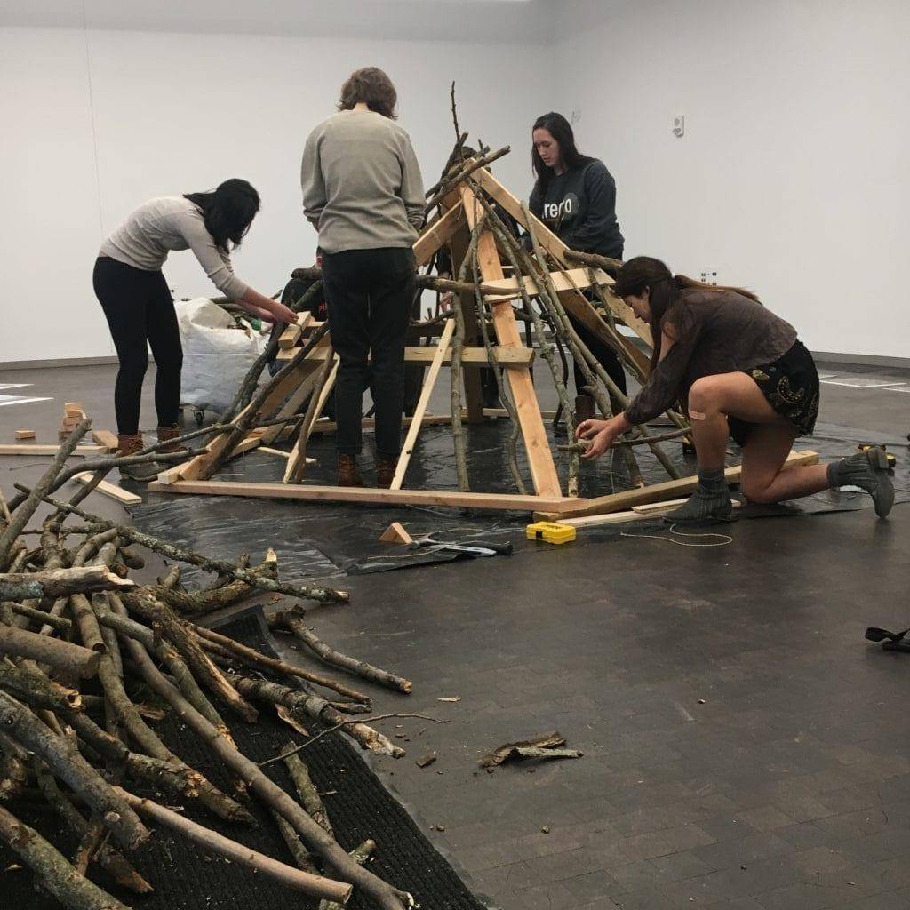 An immersive installation documenting the Millstone River (aka Carnegie Lake) that runs through Princeton’s campus, including sounds of water recorded onsite, a human-scale beaver lodge, and photographs documenting the environment.