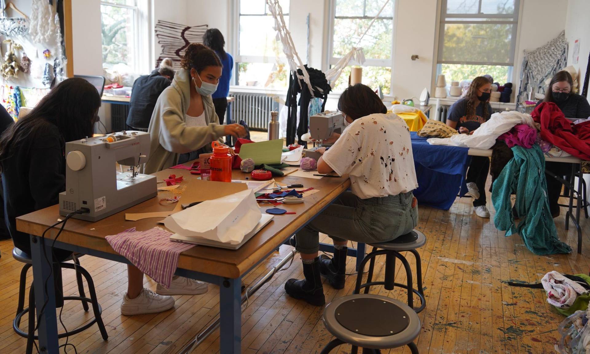 Students in Fabric Logics: Textiles as Sculptures (VIS 229) taught by MJ Daines experiment with 3D fabric construction as a means for making sculpture. Photo by Zohar Lavi-Hasson