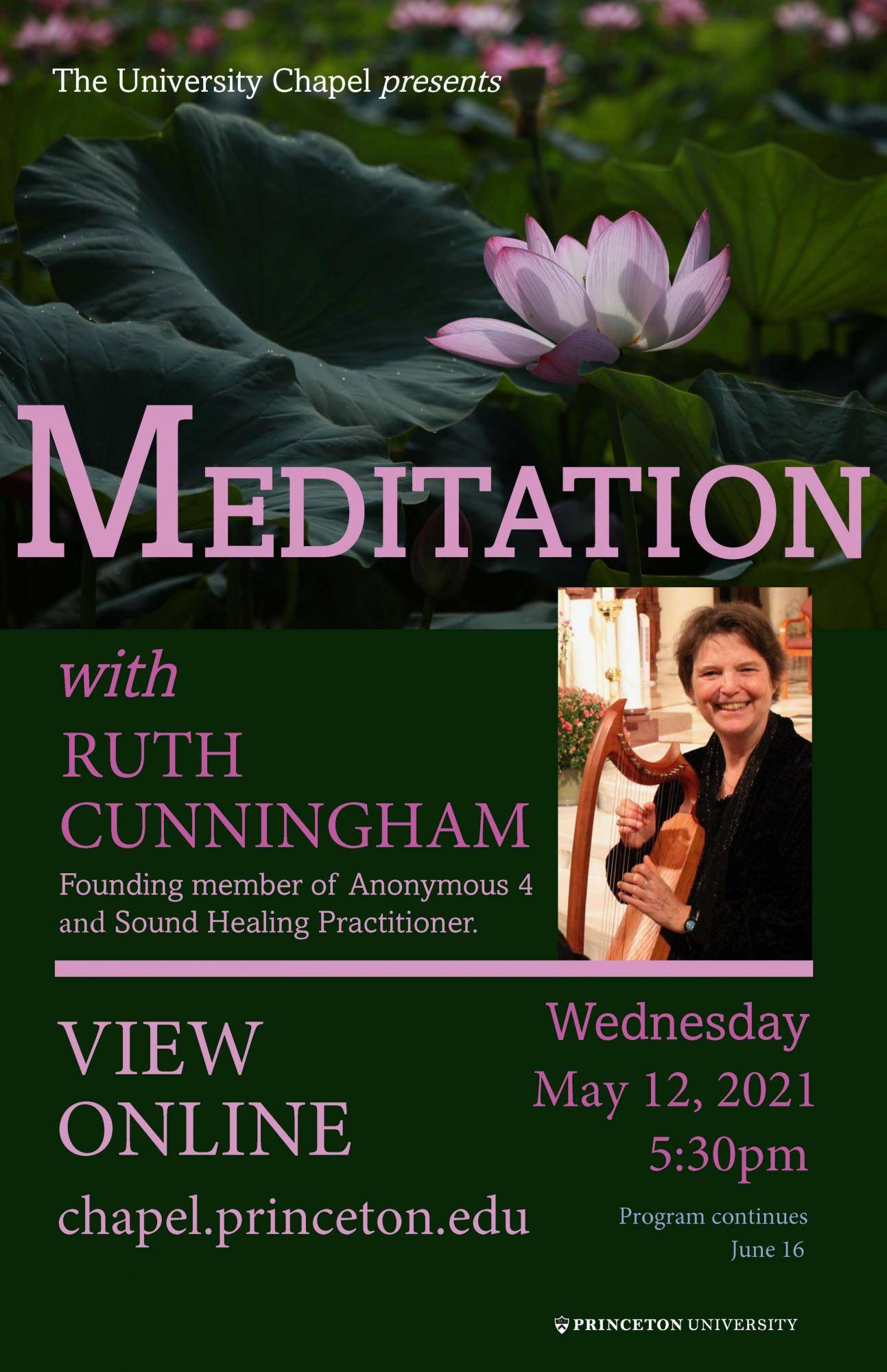 Please join us online for Music Meditation with Ruth Cunningham - a founding member of the world renowned vocal ensemble Anonymous 4 and a sound healing practitioner. She specializes in early music and improvisational sacred music from varied spiritual traditions both in concert and liturgical settings. She works with individuals and teaches workshops on using the voice and music as a tools for healing.